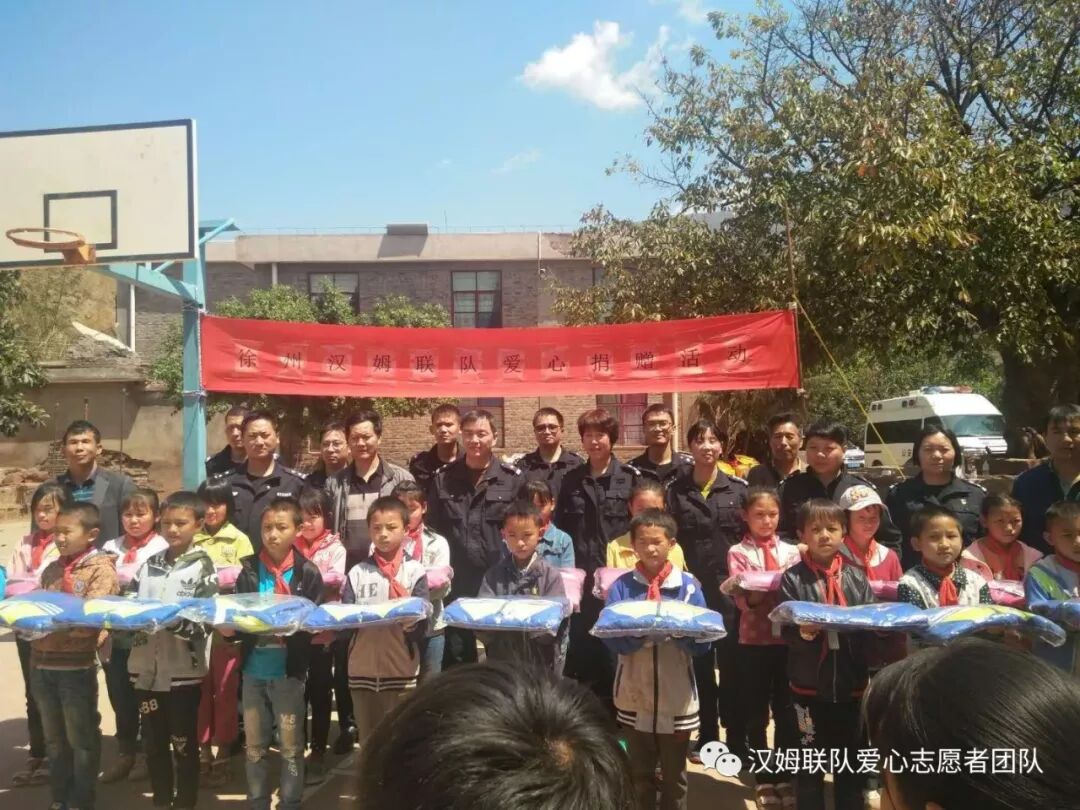 短短一周,在汉姆联队爱心志愿者团队的努力下,云南武定县以赤叨完小的50名贫困学生已得到一对一的爱心资助,在此要感谢参与本次结对活动的团队成员,大家以行动成就爱心,让温暖走进校园,更要感谢为了这50名贫困学生而辛苦考察并实事求是记录资料的爱心人士:云南省公安厅的志愿者盛勇先生及各位领导和老师。近日,以赤叨完小的部分师生在接到团队捐赠的物资后第一时间举行了物资分发活动,这些物资是孩子们的阳光、雨露、雪中炭,让远在云南的师生见证了徐州汉姆联队的真爱、善良、人间情。